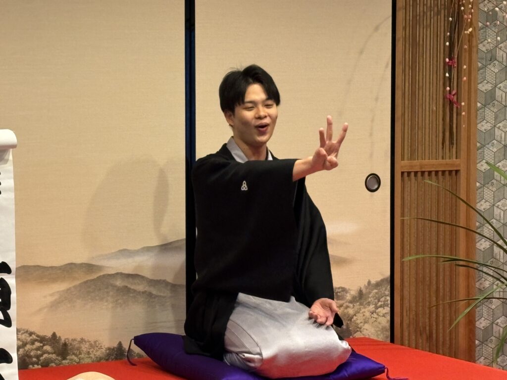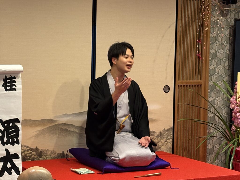 本日のトリは、多分小南陵先生と南龍先生が相談されたのだろうと思うが、若手落語家で人気も実力もうなぎ登りの桂源太さんであった。