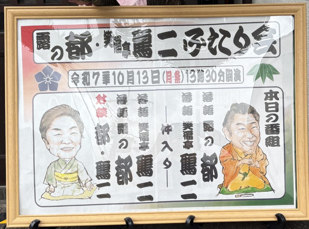 昨年来ていただいて大好評だった露の都師匠をメインに、笑福亭鶴二師匠との「二人会」を開催した。