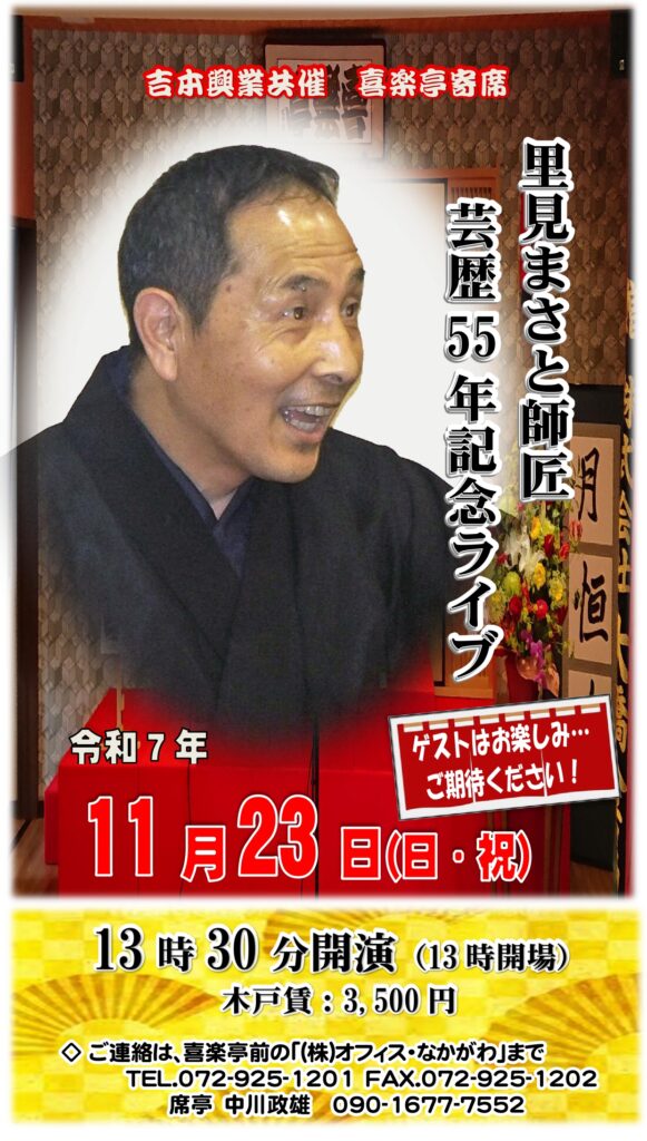 11月23日(祝) まさと師匠「芸歴55年お礼ライブ」を開催いたします!