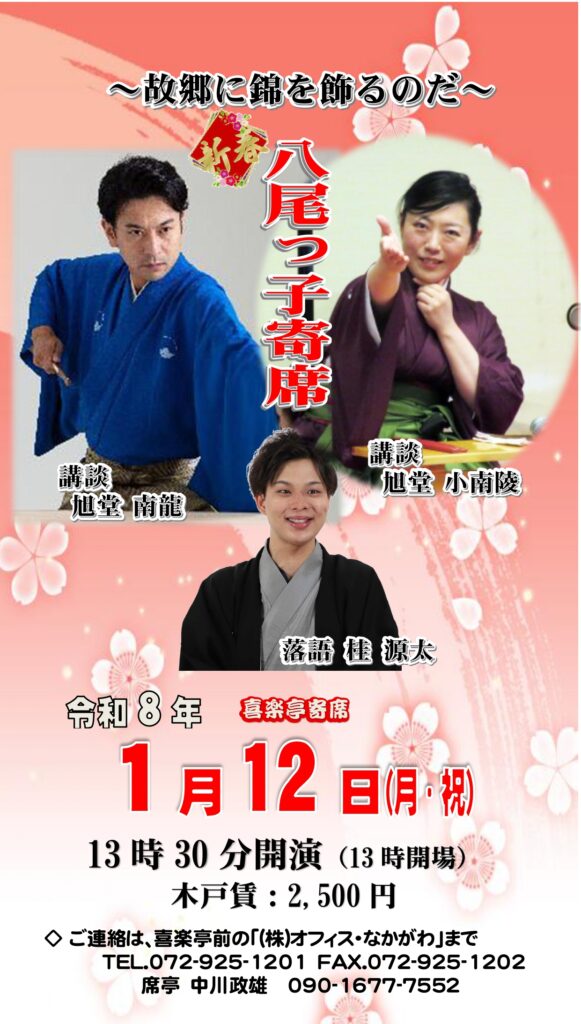 新年1月12日(日・祝) 新春!八尾っ子寄席を開催いたします!